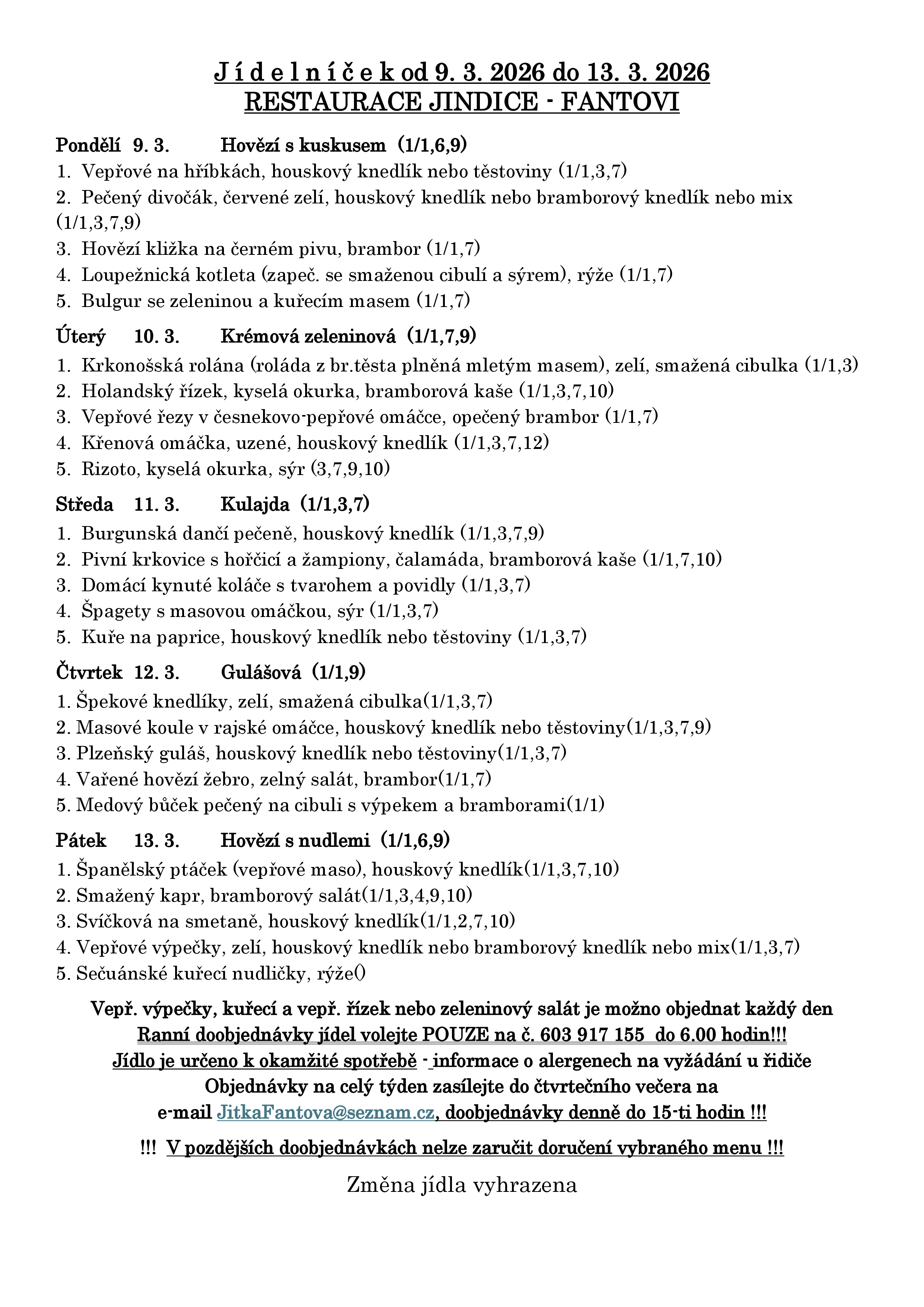 | Polévka samostatně | 40 Kč |